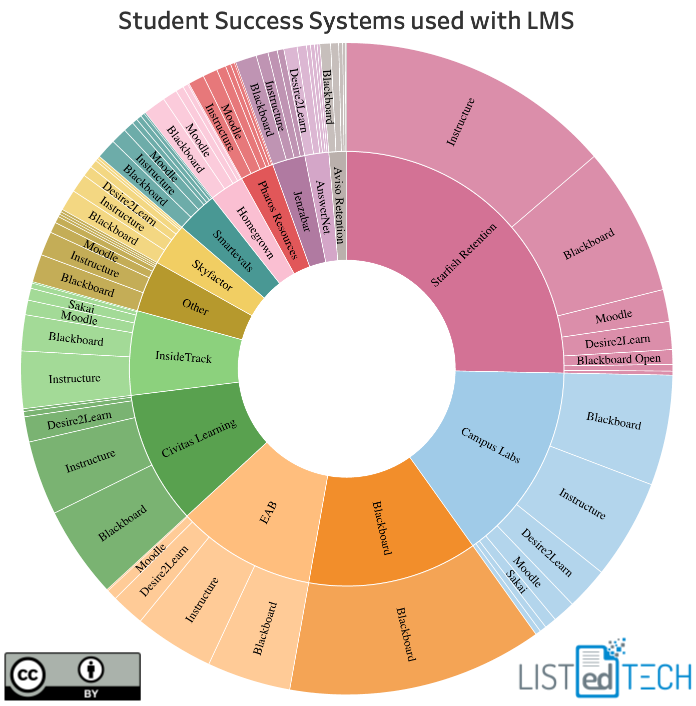 As you can see, most retention systems (inner ring) are used with all major LMS vendor (outer ring); an exception would be the Blackboard system.