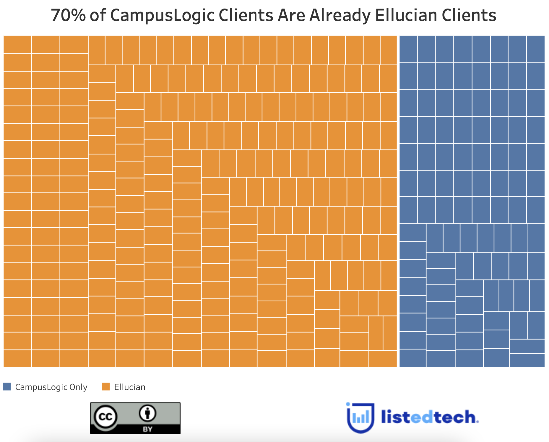 As clearly visible in the graph, over 70% of institutions that are clients of CampusLogic have already bought one of the Ellucian products. For Ellucian, the idea behind this purchase is most likely to integrate more financial aid capabilities into its product suite to create opportunities to help students with their financial challenges. In its press release, Ellucian mentions that this acquisition “provides a more connected and interactive experience creating more speed and certainty for students to meet their financial needs.” In the future, this also means that the Ellucian suite will integrate features currently offered in CampusLogic and vice versa.